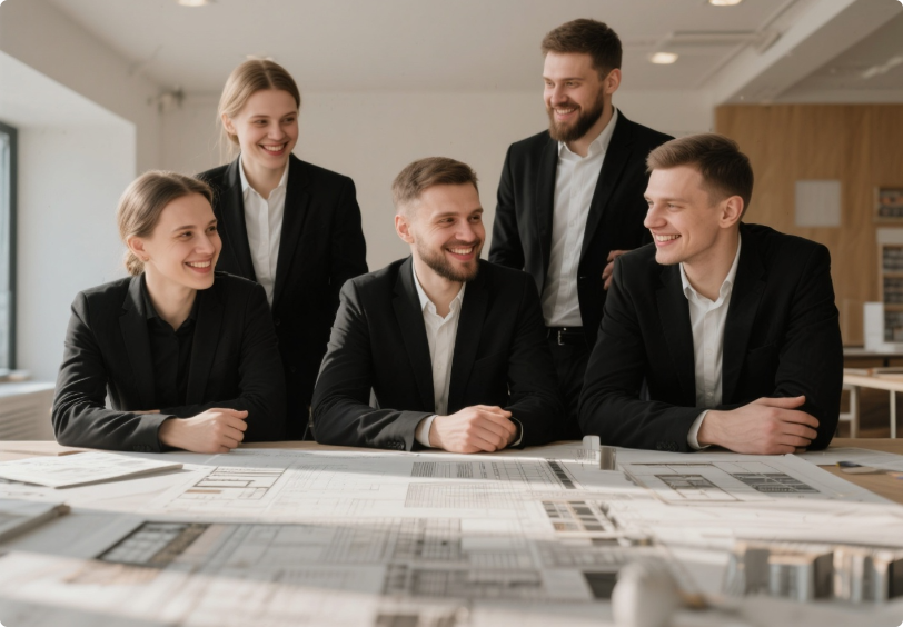 Każdy z naszych domów to indywidualnie dopasowany projekt. Współpracujemy z uznanymi biurami architektonicznymi i sprawdzonymi wykonawcami, dzięki czemu możemy tworzyć domy o spójnym stylu i wysokim poziomie dopracowania. Nasi kierownicy budowy są zaangażowani już na etapie planowania – czuwają nad płynnością procesu, są obecni na miejscu i w stałym kontakcie z klientami oraz wykonawcami. Gwarantują terminowość, spójność i najwyższy standard realizacji.